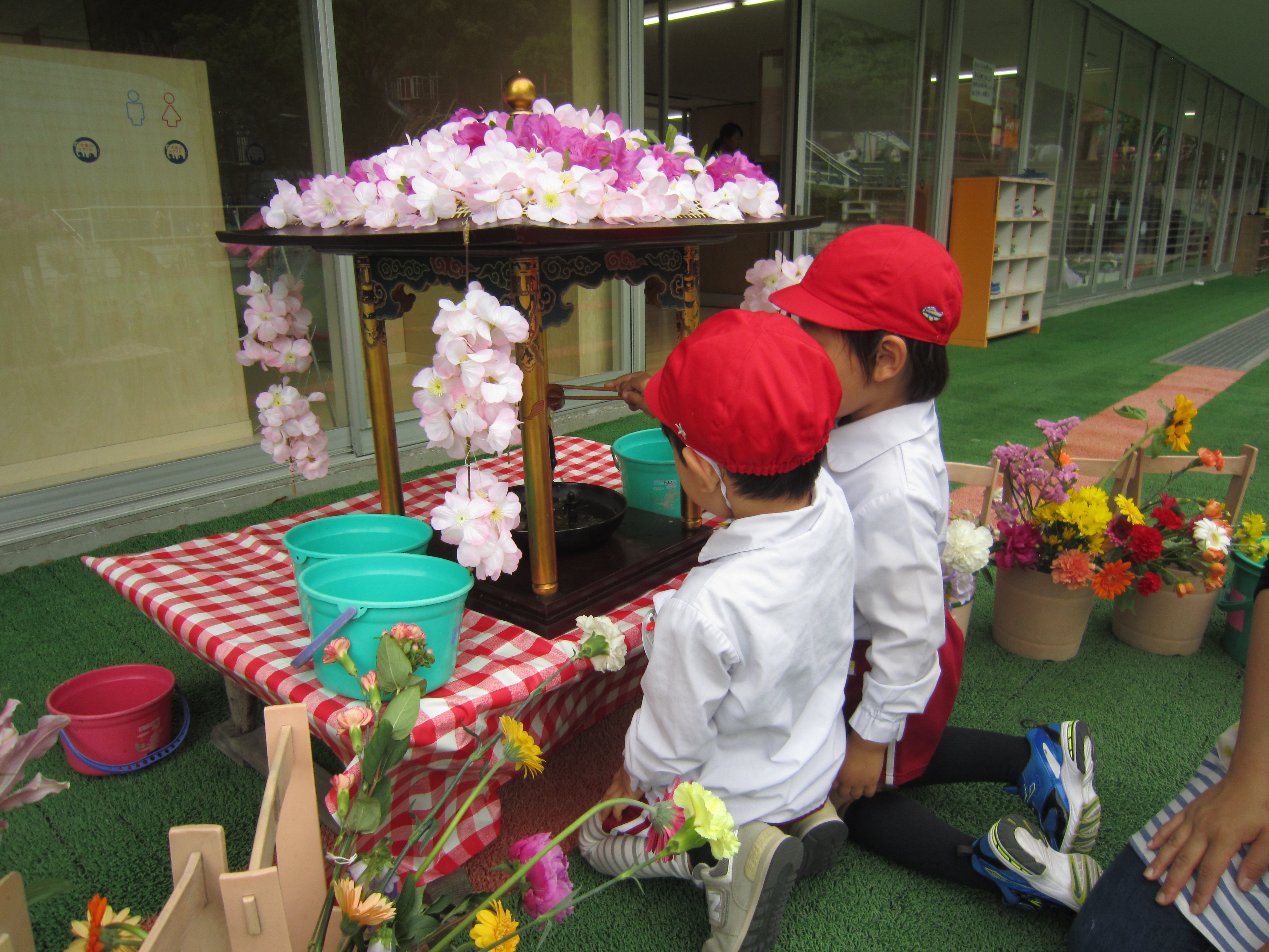 みんなでお釈迦様に甘茶をかけます。